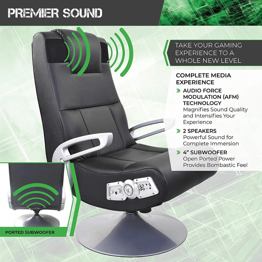 The comfortable design features lumbar support and adjustable seat height for extra comfort. The chair also includes a control panel with separate volume and bass controls, and it can be used with multiple chairs for a truly immersive experience.