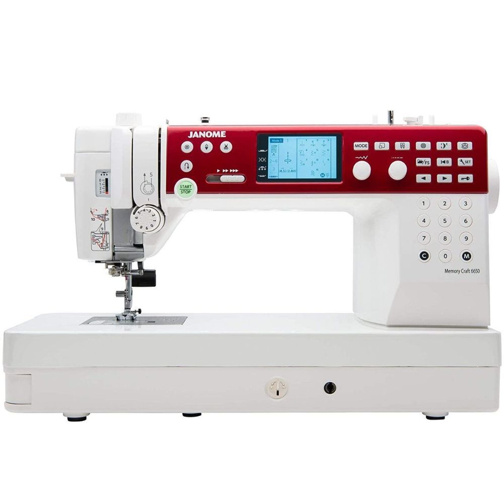 The 10 All-Metal Seamless Flatbed provides the perfect work space for projects large and small and with the speed and precision the MC6650 offers Janome is brining professional power into the project makers home. The Start/Stop button provides fingertip control of stitching.