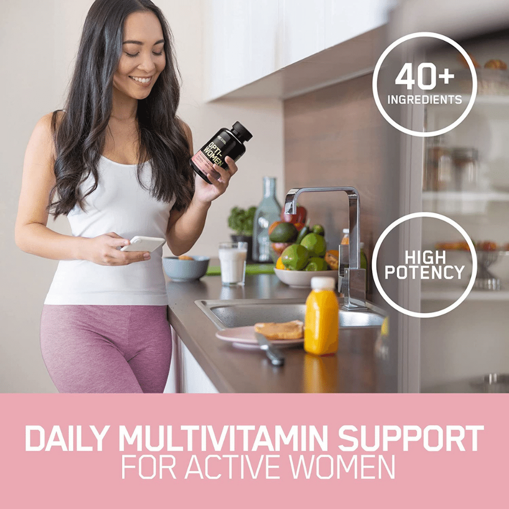 Optimum Nutrition's Opti-Women with 23 vitamins and essential minerals, as well as 17 specialty ingredients that help create a comprehensive and multifaceted multivitamin for the active woman.