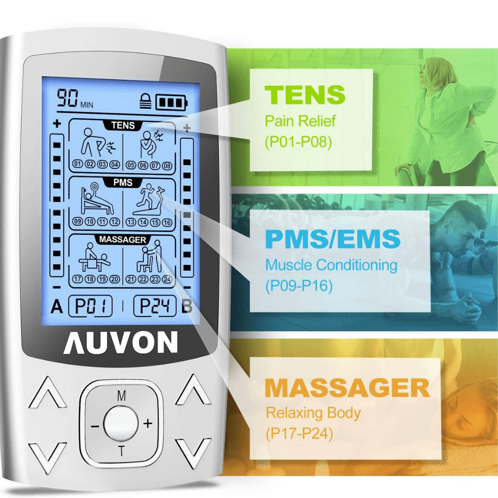 AUVON is excited to introduce our new dual channel TENS unit with 24 modes! This state-of-the-art device combines two therapies in one - TENS for pain relief and PMS / EMS for muscle stimulation.