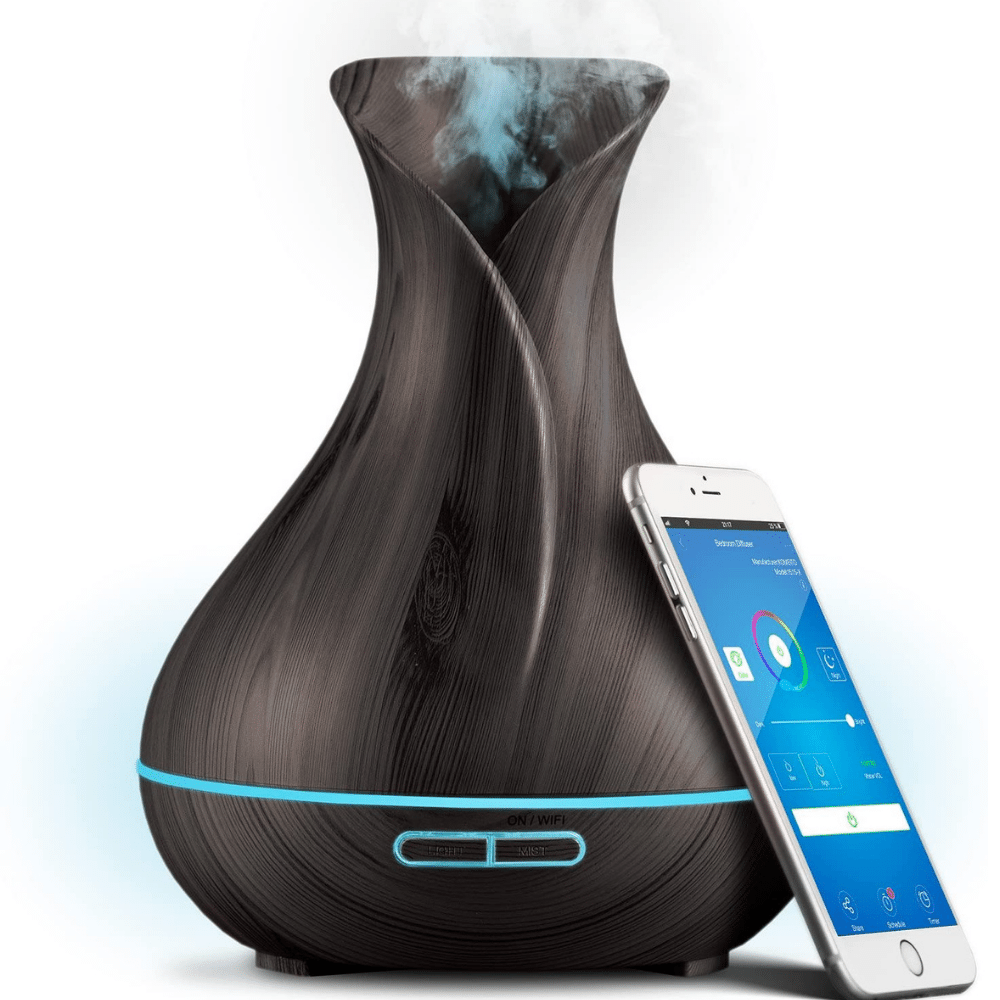 Smart WiFi Wireless Essential Oil diffuser. This amazing diffuser uses ultrasonic frequencies to atomize water and oil molecules, creating a healthier alternative to heat diffusers that can damage essential oils. Plus, it's compatible with Alexa and Google Home for your convenience.