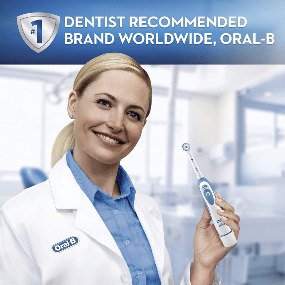 This toothbrush is also compatible with Oral-B Deep Clean, anti-microbial, and 3D White Action replacement heads. The electric toothbrush has a long battery life and comes with a travel case, making it perfect for traveling.