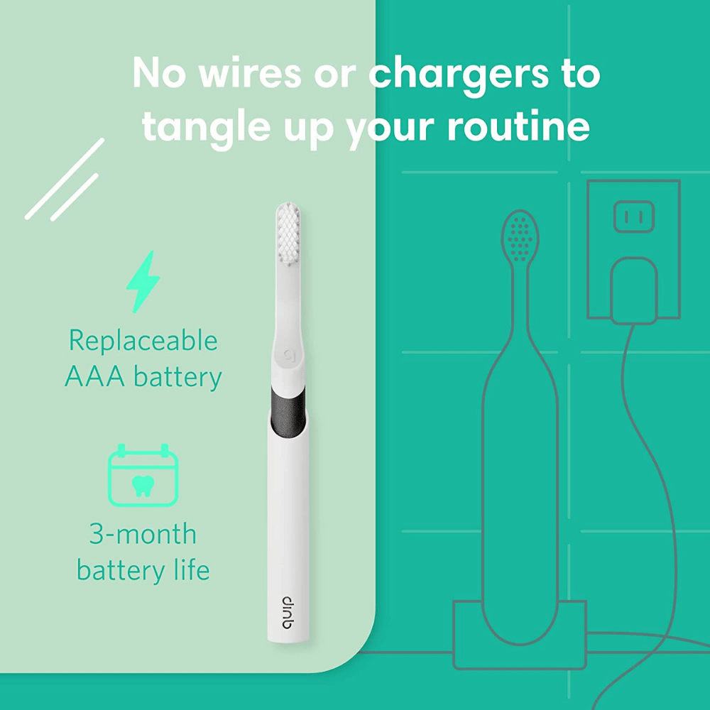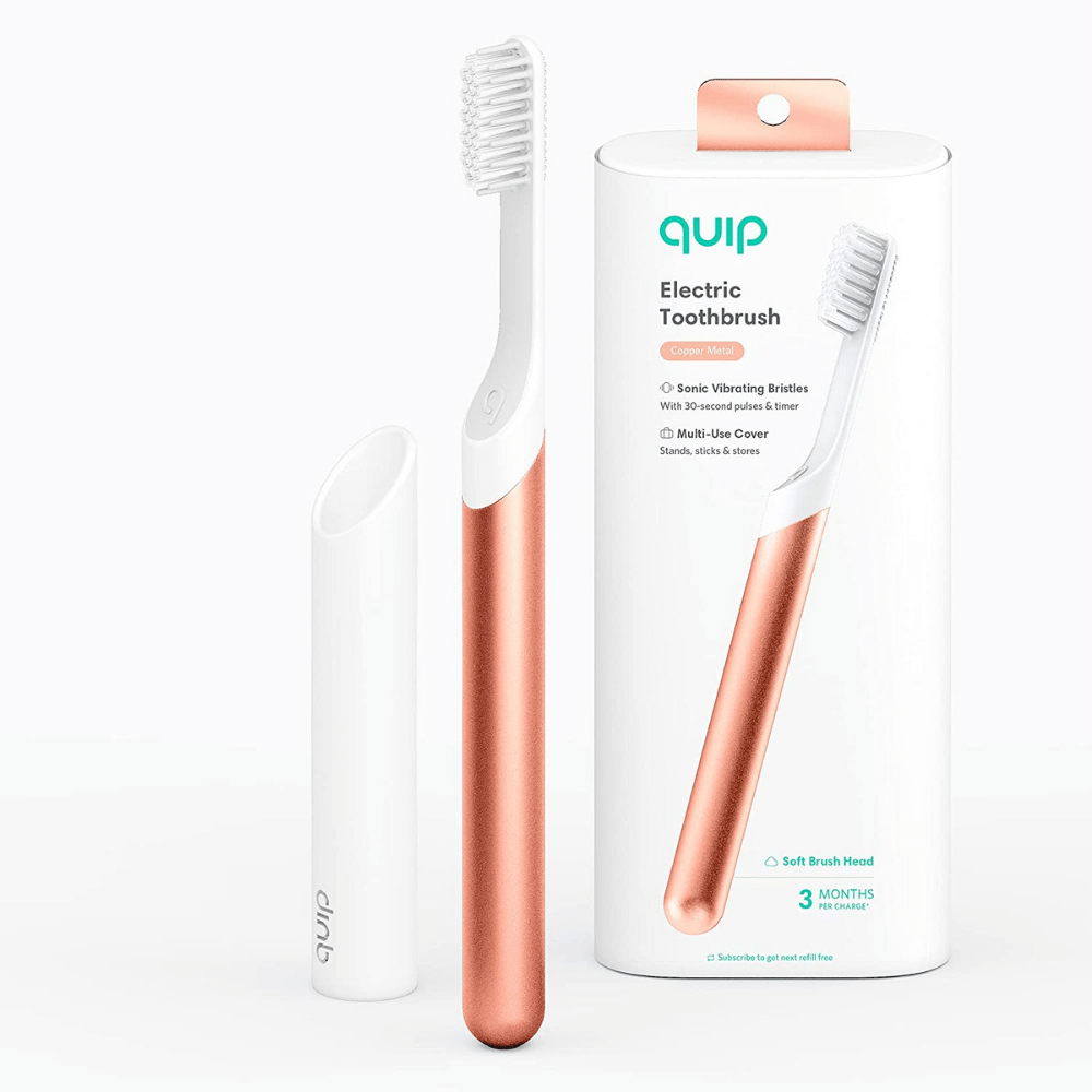 The quip toothbrush is a must-have for anyone who wants to keep their teeth clean and healthy while on the go. This battery-operated toothbrush features soft bristles that are gentle on the gums and a timer that helps ensure that you brush for the recommended two minutes.