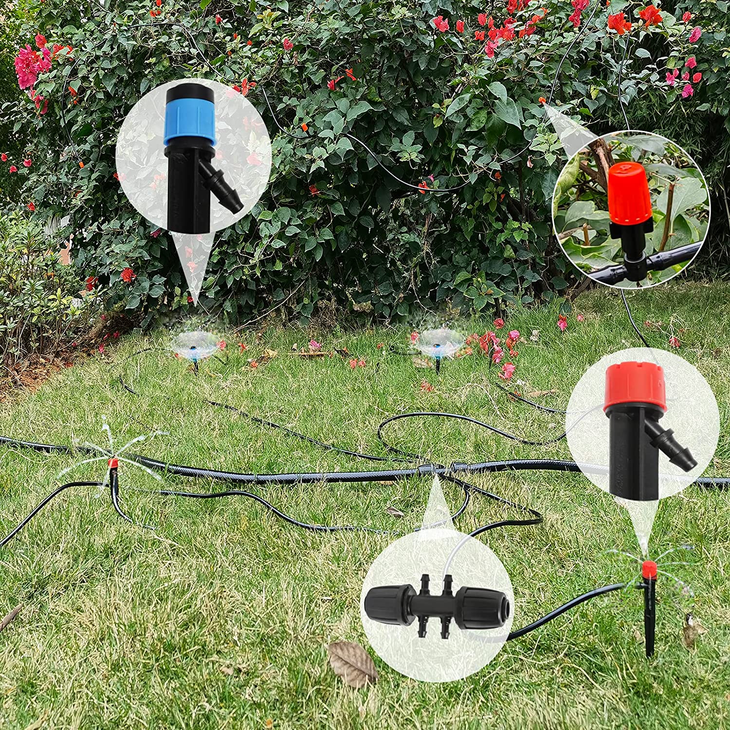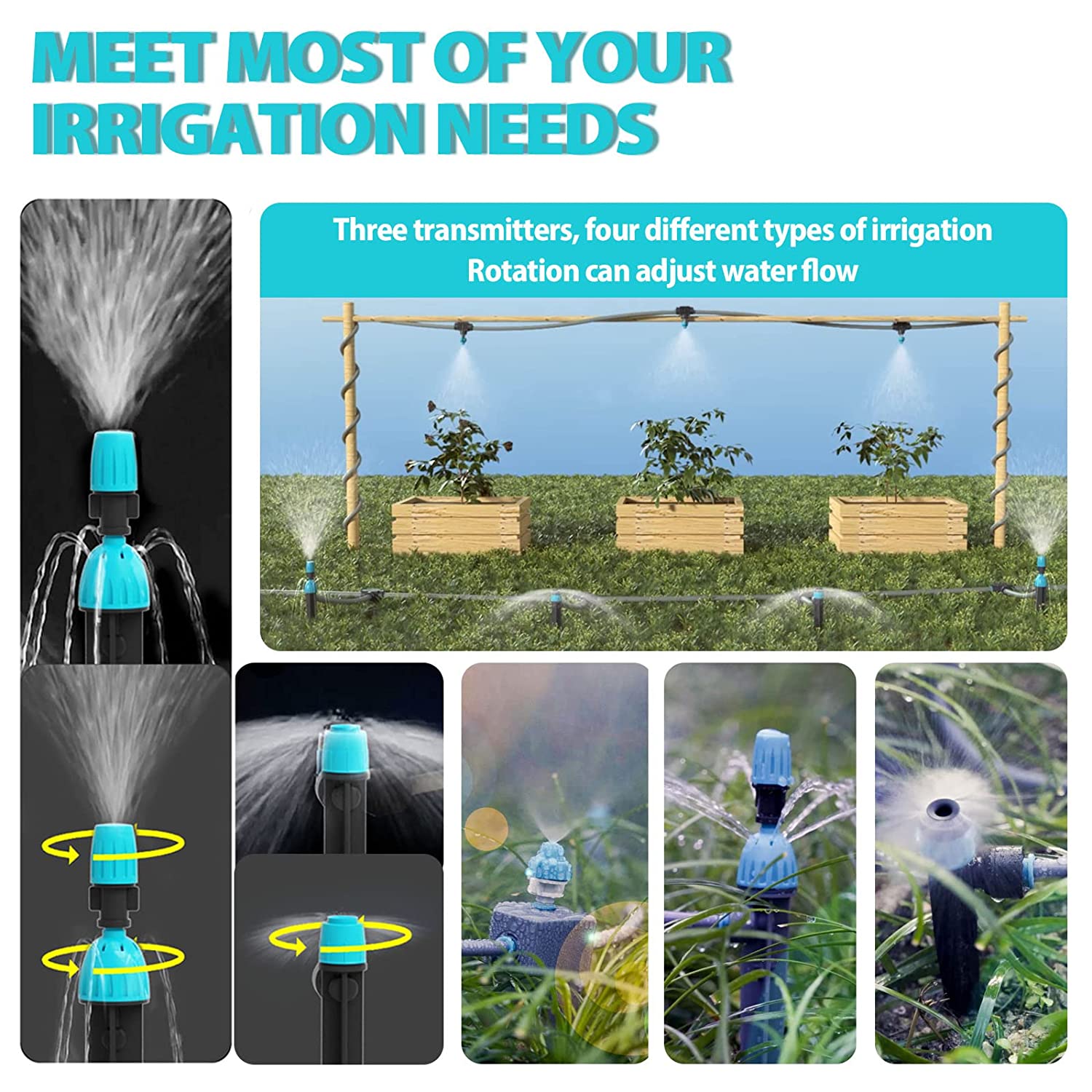 - 3 Kinds of Sprayers: We include 3 kinds of sprayers to adjust different water flow. We includes 10 pcs drip emitter stream, 10 pcs drip emitter vortex, 20 pcs misting nozzle.