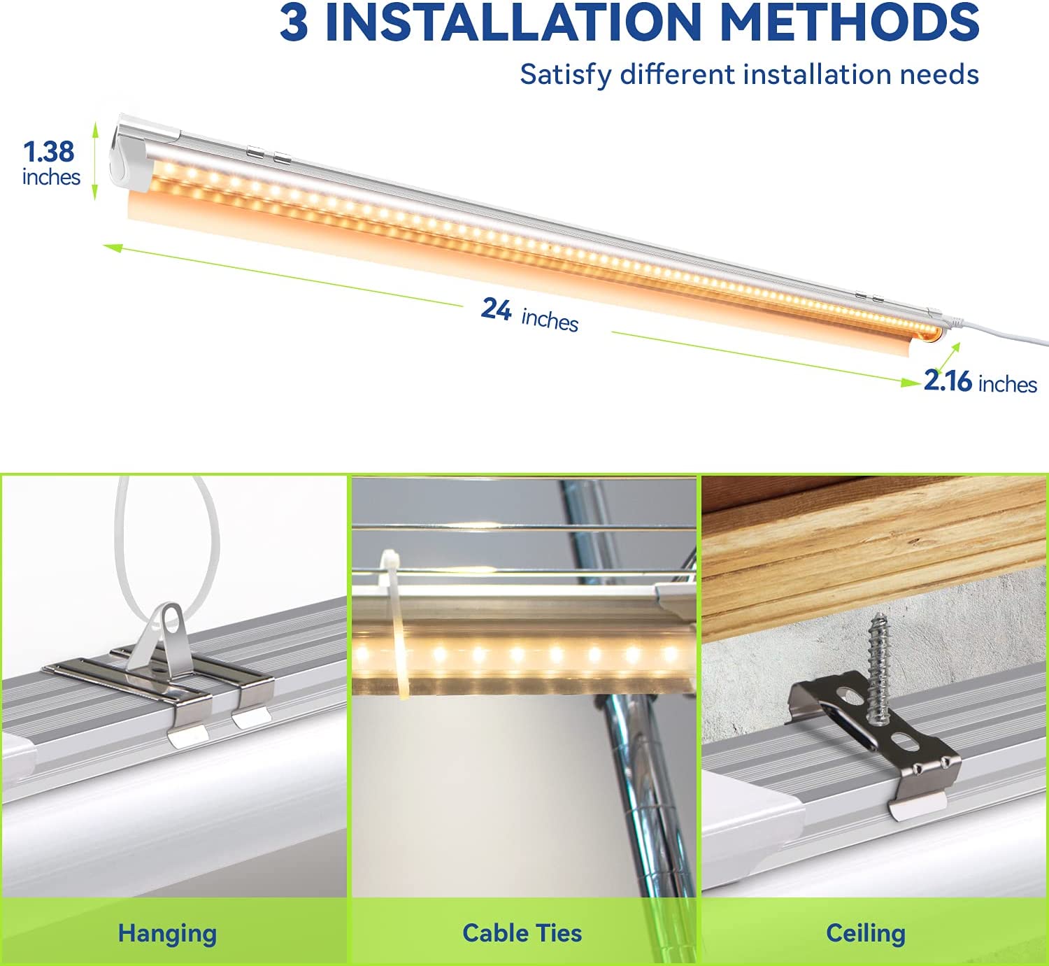 - Efficient Heat Dissipation Monios-L T8 led grow light with aluminum housing provides high-efficiency heat dissipation, ensuring a longer service life of the led chips. The 24W double-row led chips with high brightness and low light decay, 2900K color temperature makes it look more comfortable.