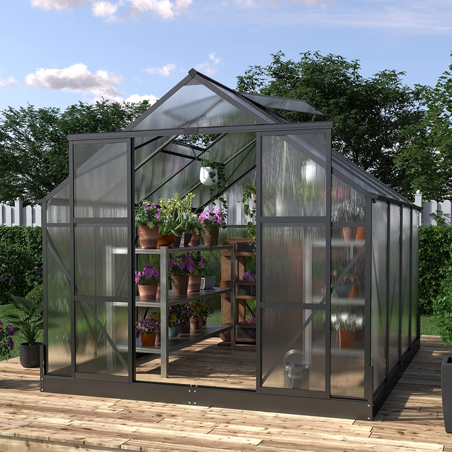 3. AMERLIFE 10x8x7.5 FT Polycarbonate Greenhouse 2 Sliding Doors 2 Vent Window Walk-in
