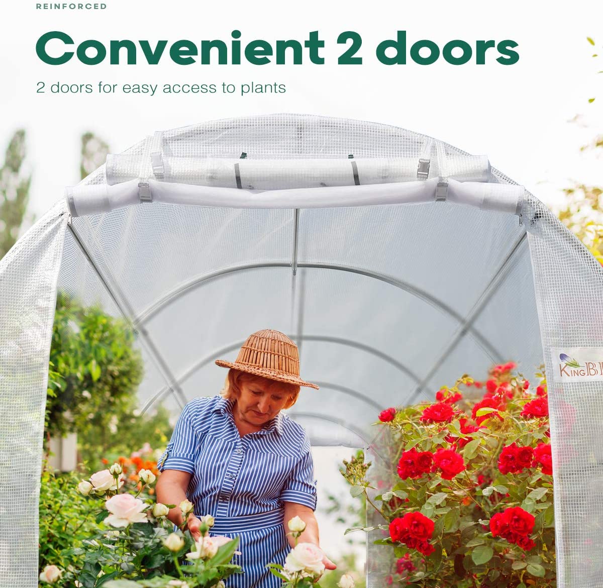 - Greenhouse with a sturdy structure, KING BIRD portable greenhouse meets all your needs. This large greenhouses are professionally designed, and made of galvanized steel, with 3 crossbars on the top and 10 poles at the bottom to reinforce the entire structure, extra 20 stakes, 4 ropes to fix it on the ground firmly, protect plants from wind, rain, snow around the year. The large space is perfect for vegetables, tropical plants, so on.
