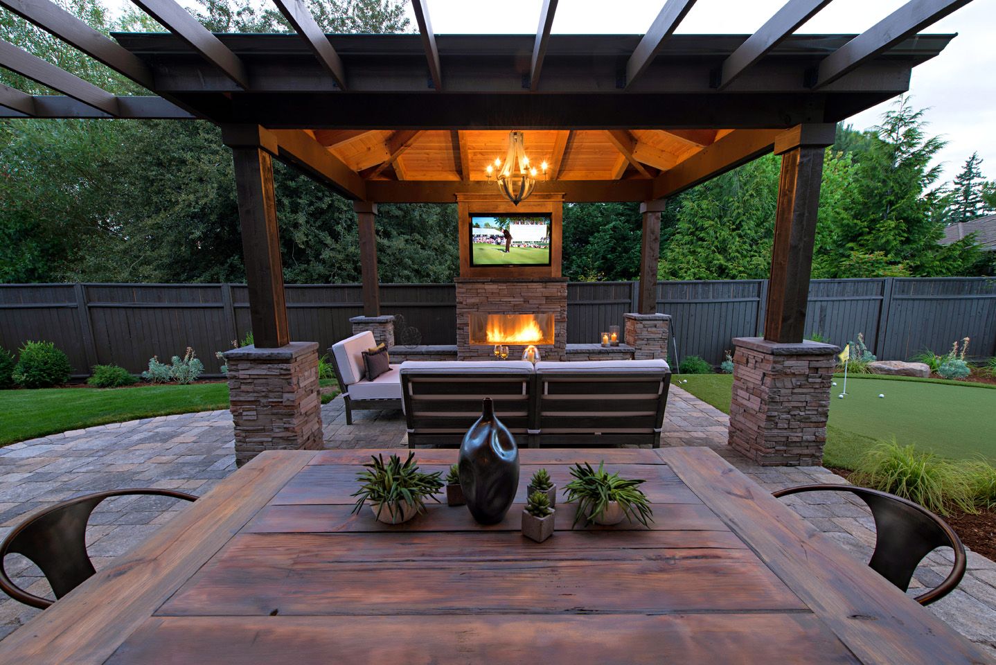 For example, if your yard is filled with lush greenery and natural stone features, then use wood beams and posts to construct your gazebo. If there are more contemporary elements present in your outdoor area, then opt for metal poles rather than wood.