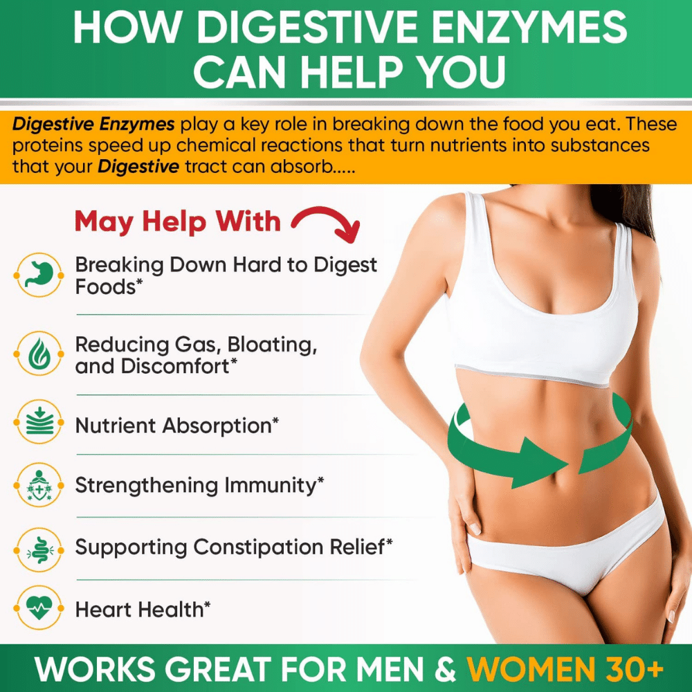 Complete digestive enzyme pills complex blend can help to ease gas, bloating, and constipation while also aiding gut health with its natural herbs combination.