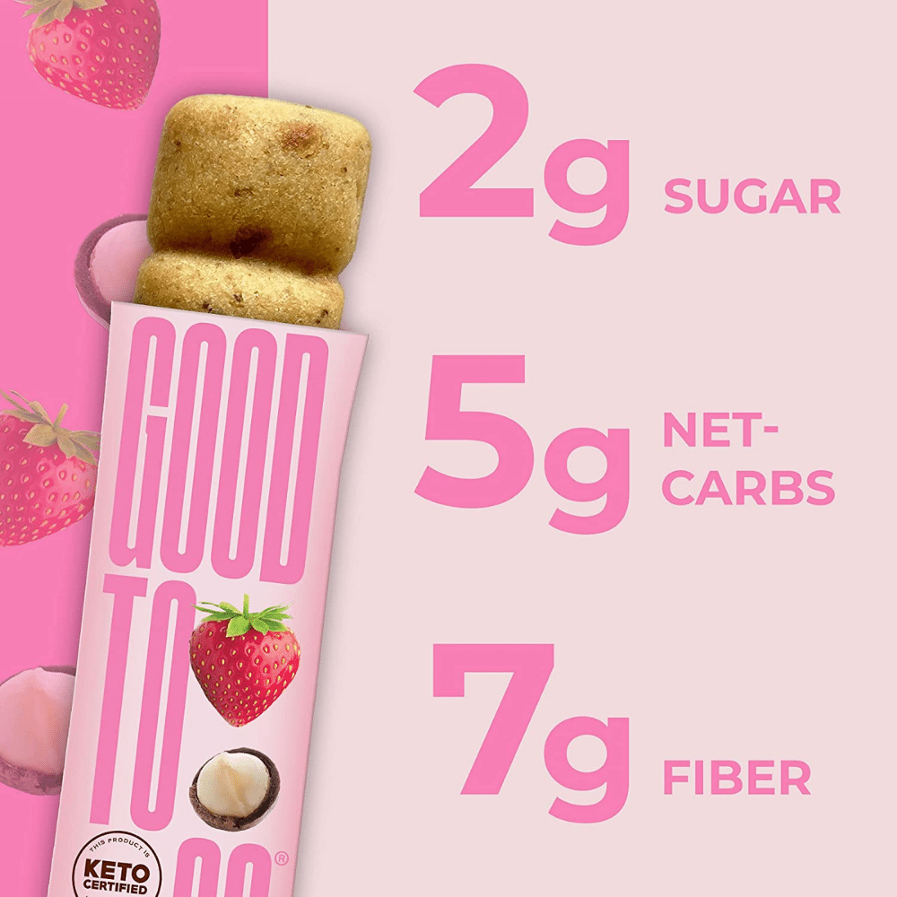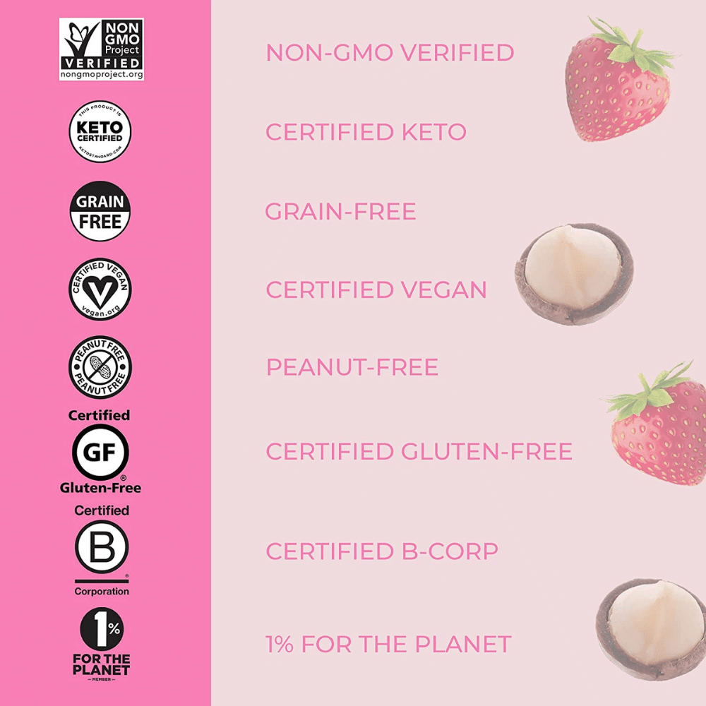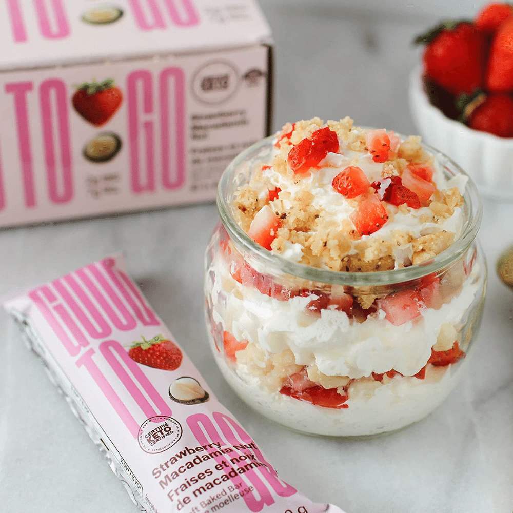 This low-carb snack will keep you going throughout the day. Soft-baked bars are the perfect snack solution. Made with real strawberries and macadamia nuts as well as other organic ingredients, these bars are gluten-free, Keto Certified, Paleo Friendly, and Low Carb.