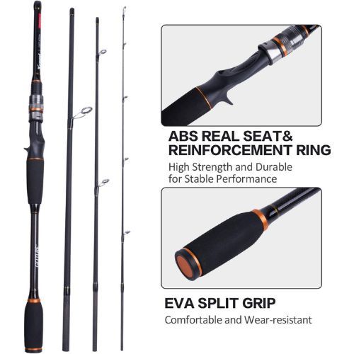 With its stainless steel and ceramic heavy-frame double foot guide features, as well as three convenient sections, you'll love every moment of casting while using Fiblink Graphite Baitcasting Fishing Poles.