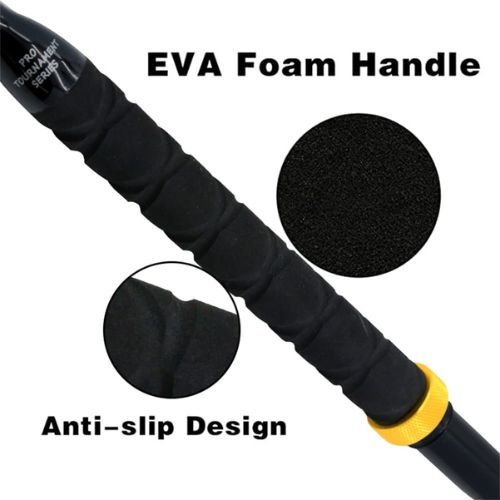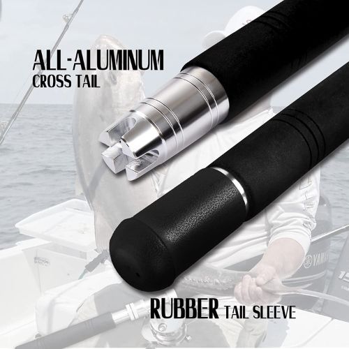 For all your deep-sea trolling needs, Topline Tackle is there to help. It offers a high-quality heavy-duty boat fishing pole made of solid fiberglass that can stand up to even the toughest conditions. The classic design combines an EVA handle grip and an aluminum bent butt for increased control and comfort when pulling in impressive catches.
