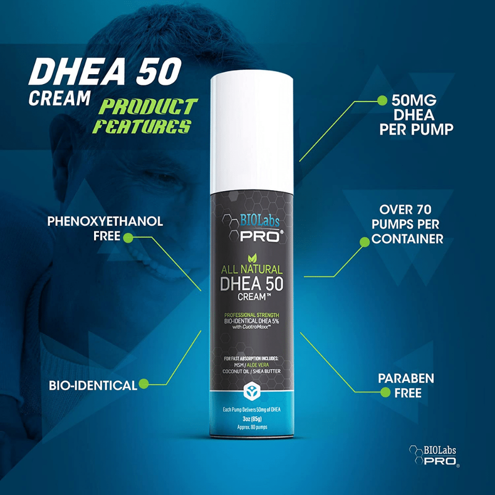 A way to boost your testosterone levels with Bio Labs Pro DHAE Testosterone Cream! Some studies show that DHEA Cream is 5x more effective than pills, so you know you're getting a great product.