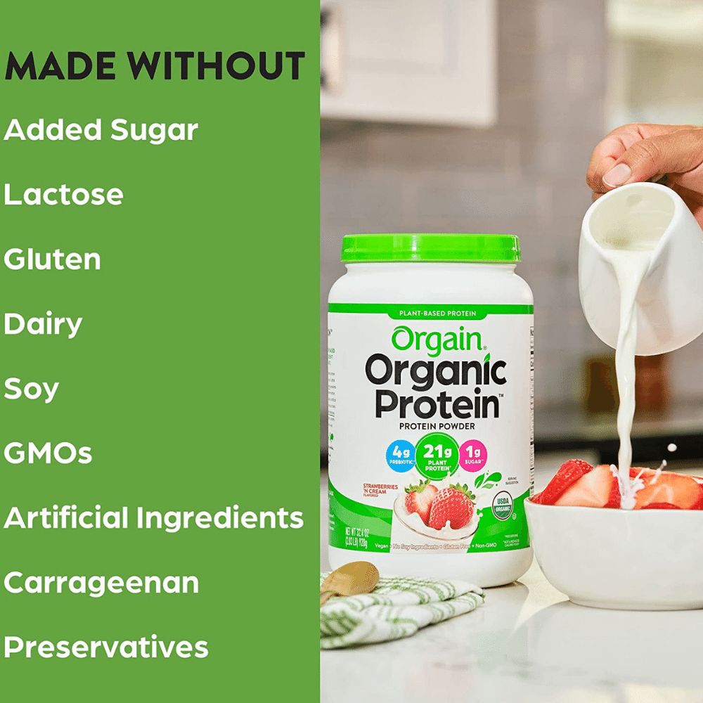 With 21g of plant-based protein, it is ideal for muscle recovery and pre or post-workouts. It is soy free and non-GMO. So if you are looking for a healthy and delicious way to get your protein fix Orgain is the best choice!