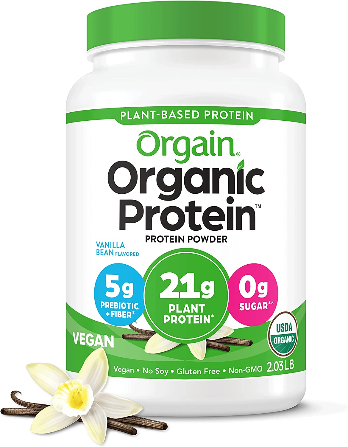 - 21 grams of organic plant based protein (pea, brown rice, chia seeds), 2 grams of organic dietary fiber, low net carbs, 0 grams of added sugar, 150 calories per serving